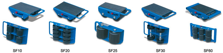 注意事頂: 以下滑動輪系列產品的額定載重量是指受力為鋼制表面時,滑動輪組件所能承受的最大載荷,想要安全可靠的移動載荷,最重要的是受力面的材料。瓷磚或易碎裂的受力面是不適合滑動輪工作的,在混凝土或停機坪受力面上工作時,滑動輪的載重量將受到一定的限制(取決于受力面的設計壓力和表面平整度)。 建議鋪置厚度為10mm以上的鋼板在受力面上,滑動輪的拉力一般為實際載重量的4%-7%(視受力面的平整度而定)。在斜坡上工作時,一定要采取一些安全預防措施,避免滑動輪失控和載荷傾翻。 選用滑動輪時,應考慮載荷重量是否均勻分布,以確保單個滑動輪單元的受力在其額定載重量之內,如有必要,可局部增加滑動輪單元的數量。 ● 與撬棒或千斤頂配合使用.可用于重型貨物的移動 ● 耐磨橡膠表面可防止載荷滑動并有效保護載荷表面