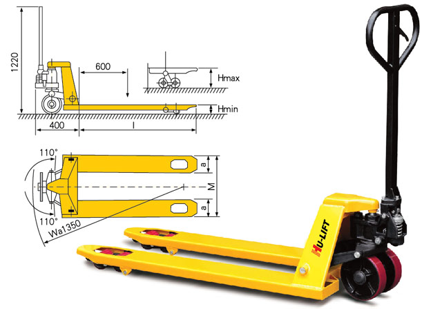 ◆貨叉最小Hmin/最大高度Hmax為75/195mm可選 ◆以上產(chǎn)品特殊貨叉長度可定制:800、1500、1800、2000mm ◆前輪標(biāo)準(zhǔn)配置為雙輪,單輪可定制 ◆后輪標(biāo)準(zhǔn)配置為聚氨酯(PU),另有尼龍輪、橡膠輪可定制